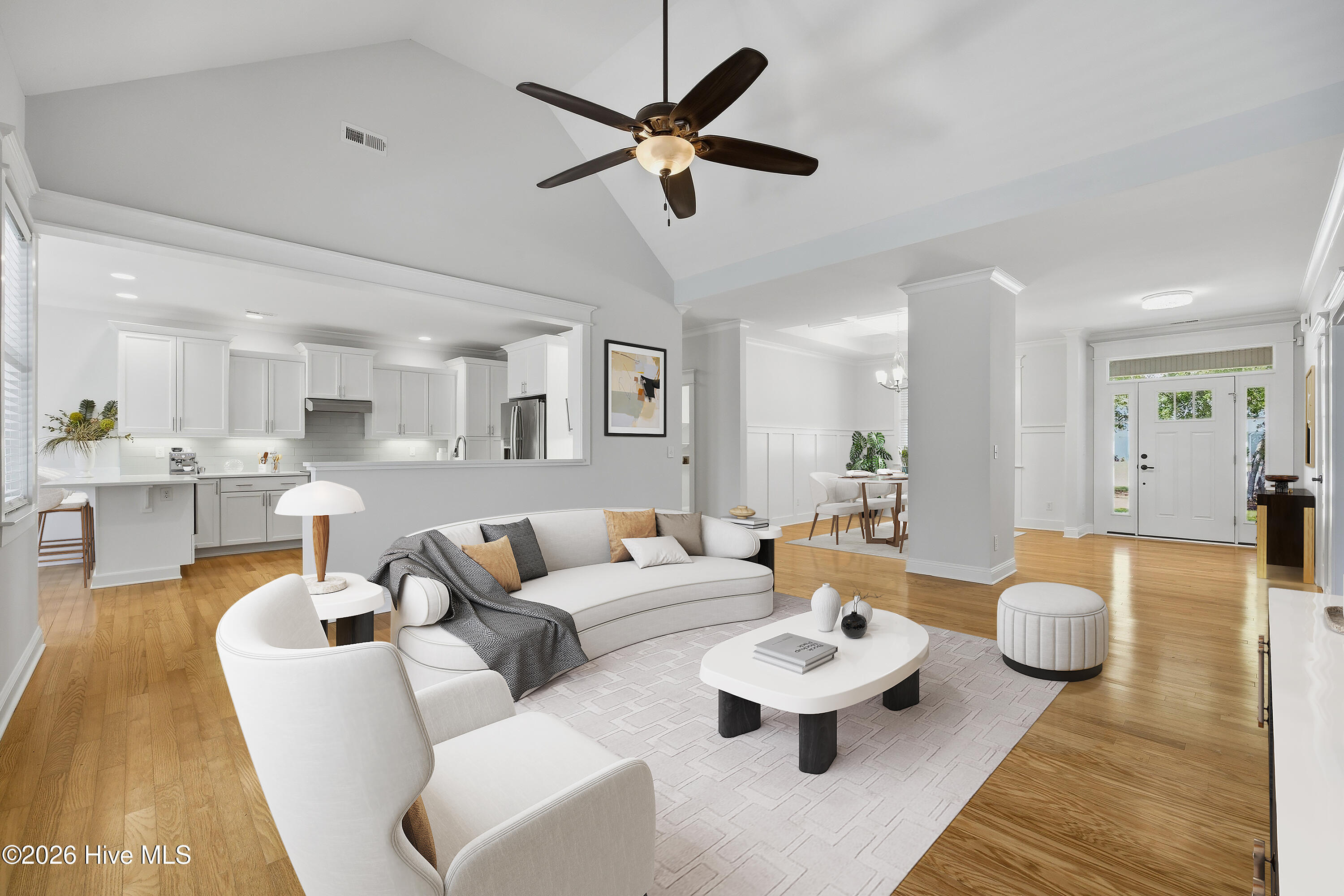 This beautiful luxury home is ready for the entertaining season with its new lush landscaping and privacy wood fence. Front porch and screened back porch are great for enjoying time with neighbors and family. Spa like primary suite with its spacious layout, large walk-in closet, walk-in rain shower, and restful soaking tub. The main level also showcases a formal dining room adorned with a coffered ceiling, complemented by wainscoting throughout for added elegance. Bright and roomy kitchen, complete with stainless steel appliances, new quartz counter tops and sunny windows. Entertain guests in style in the generously sized living area, or retreat to the cozy screened-in porch for relaxation and enjoyment of the serene surroundings. Additional highlights include a finished room above the garage, perfect for use as a bedroom, office or flex space and has its own bathroom. The two car side load garage with new epoxy flooring off the laundry/mud room is perfect after coming in from an afternoon at the beach. Outside, revel in the expansive half-acre lot, offering ample space for outdoor activities and potential expansion. Indulge in the resort-style amenities of the community, including a pool, clubhouse, fitness center, and pier overlooking the Intercoastal waterway, complete with a gazebo for picturesque waterfront gatherings. Boating enthusiasts will appreciate the convenient public boat launch and Sloop Point Marina with dry dock storage only 2.2 miles around the bend. Golfers take note, Olde Point Country Club is open to the public. Semi-private 18 hole course known for its scenic layout, water, and native foliage. Includes Range, putting green and pro shop. Catch a bite to eat at ''Nineteen,'' their public casual dining restaurant. Don't forget about the Belvedere Pickleball Center, and Ironclad Golf and Beer Garden. This exceptional property combines coastal charm, modern comfort and a vibrant community lifestyle-all just minutes from the beaches.