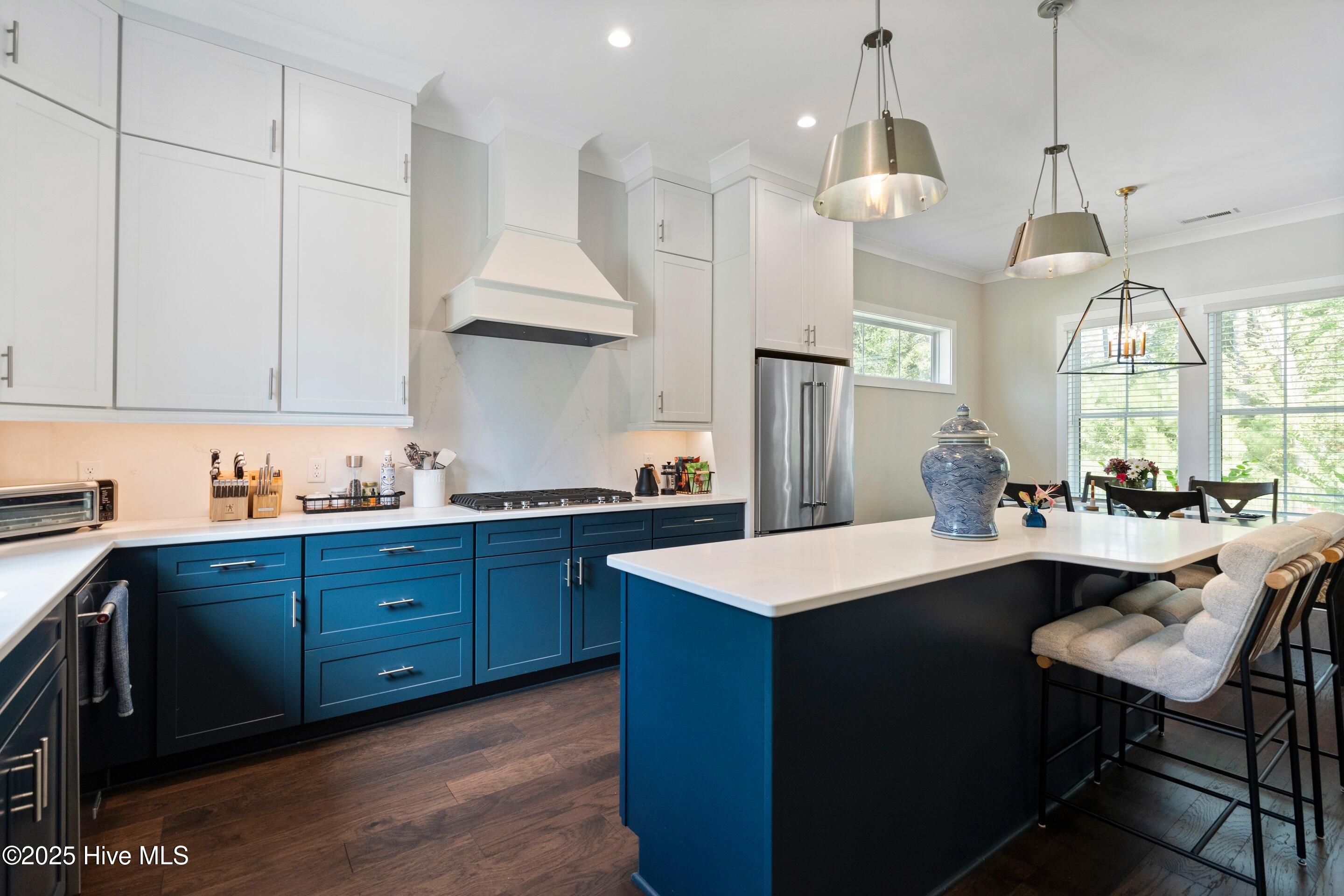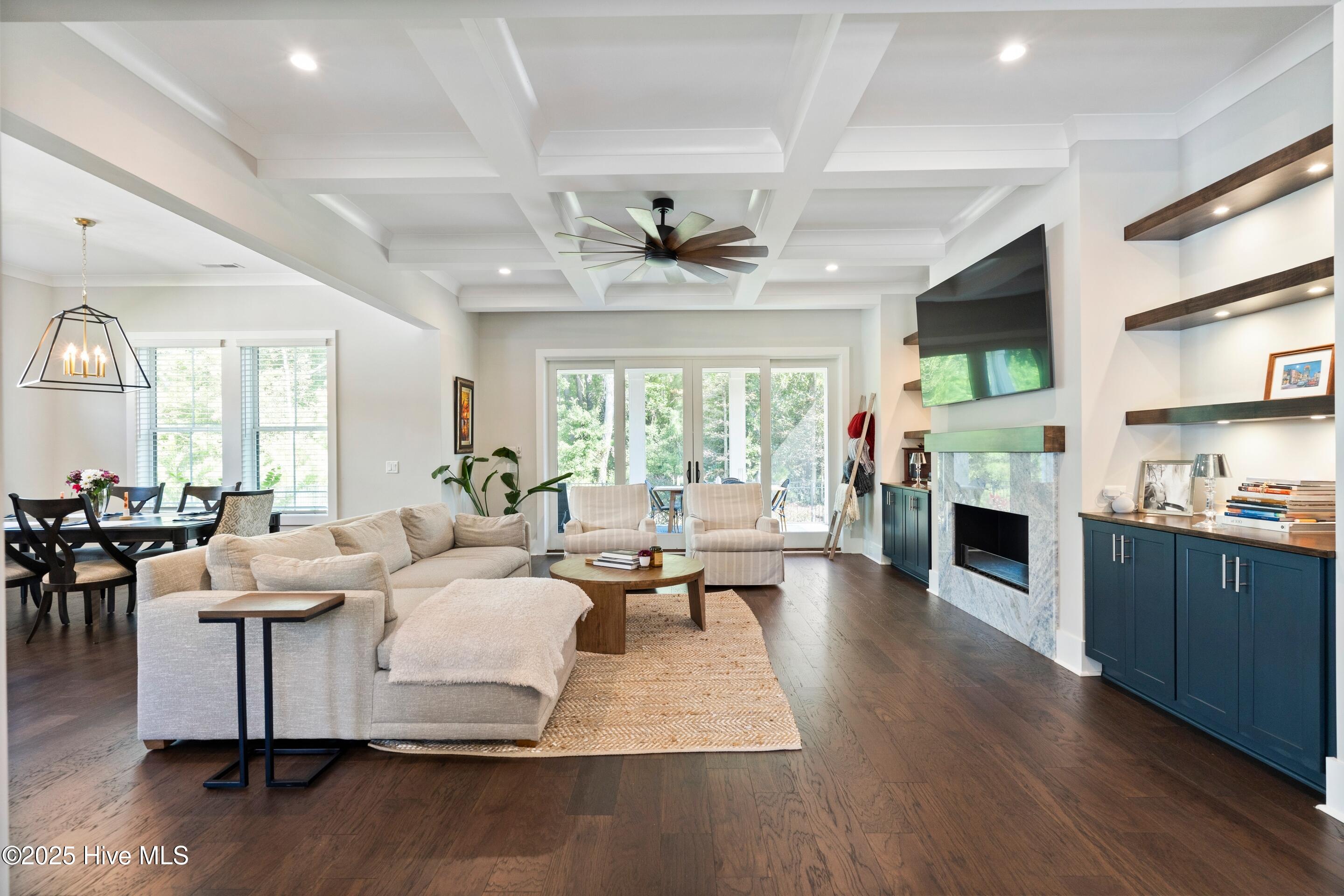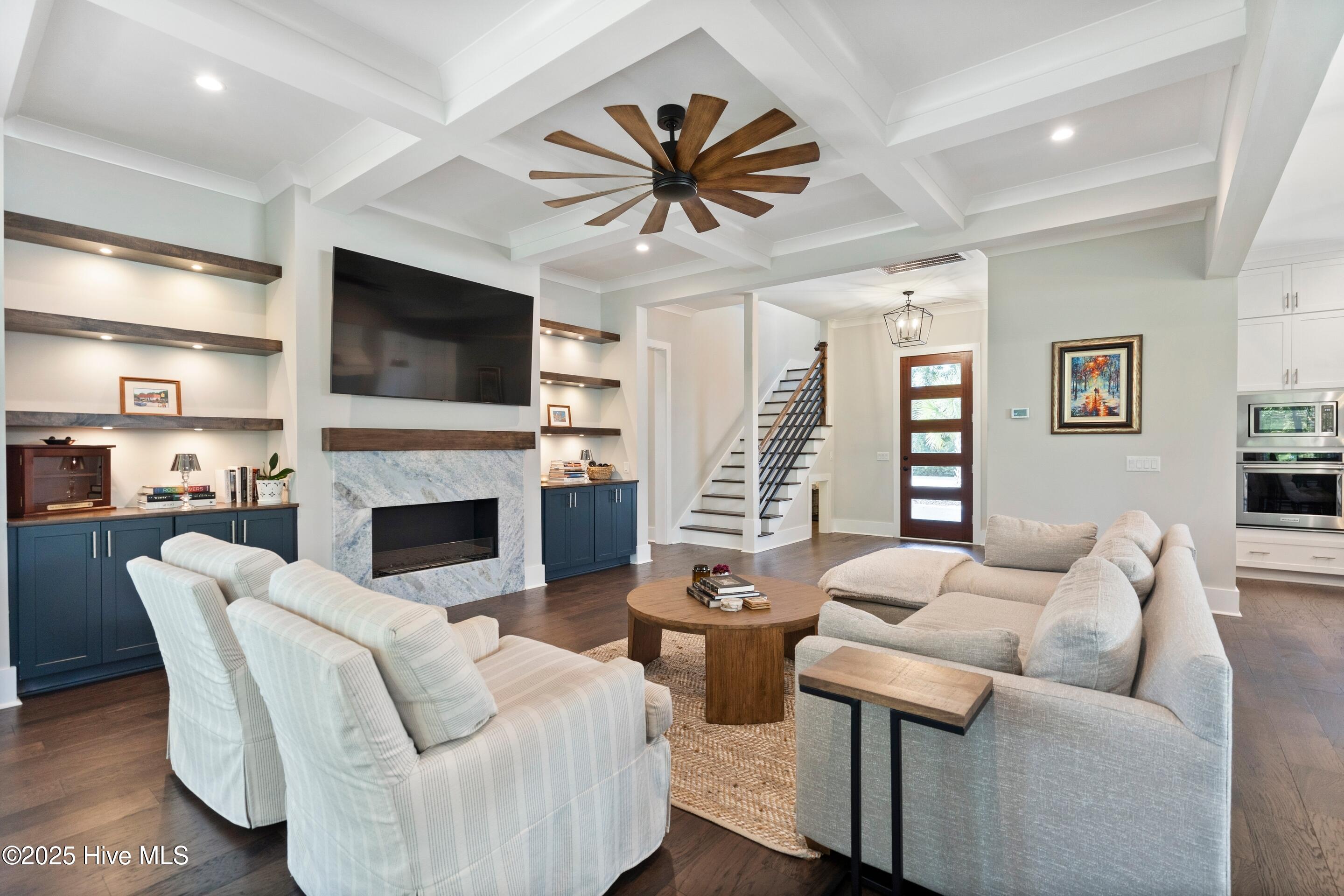 Welcome to 1933 Loblolly Landing Lane, a stunning custom home built in 2021 by Michael Christian Homes, showcasing timeless modern farmhouse style and exceptional craftsmanship. This thoughtfully designed residence offers 4 bedrooms, 3 full baths, 2 half baths, an office, and a flex room, blending open-concept living with comfortable private spaces. Step inside to an open floor plan where the kitchen overlooks the living and dining areas, perfect for both entertaining and everyday living. The living room features coffered ceiling, custom built-ins, a fireplace, and a sliding door leading to the covered back porch, ideal for relaxing or hosting gatherings year-round. The primary suite is conveniently located on the first floor. A dedicated office sits on its own private wing, providing the perfect workspace or creative studio. Upstairs, discover a guest suite with a private balcony, an additional bedroom, and a flex room that can adapt to your lifestyle need, whether as a gym, media room, or additional office. Exterior highlights include black windows, fiber cement siding, and charming curb appeal that perfectly complements the home's modern farmhouse design. Ideally situated just minutes from Mayfaire Town Center, The Forum, and Wrightsville Beach, this home offers the perfect balance of luxury, convenience, and coastal living.