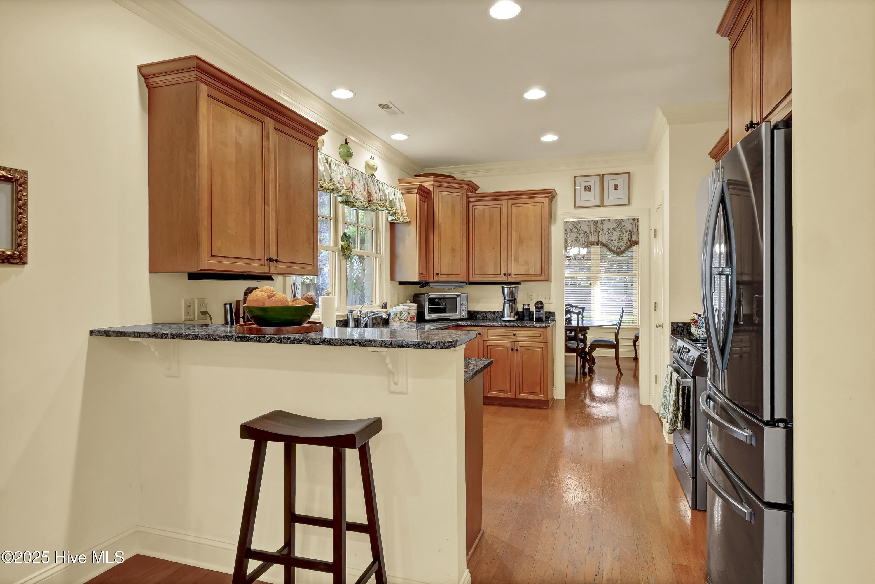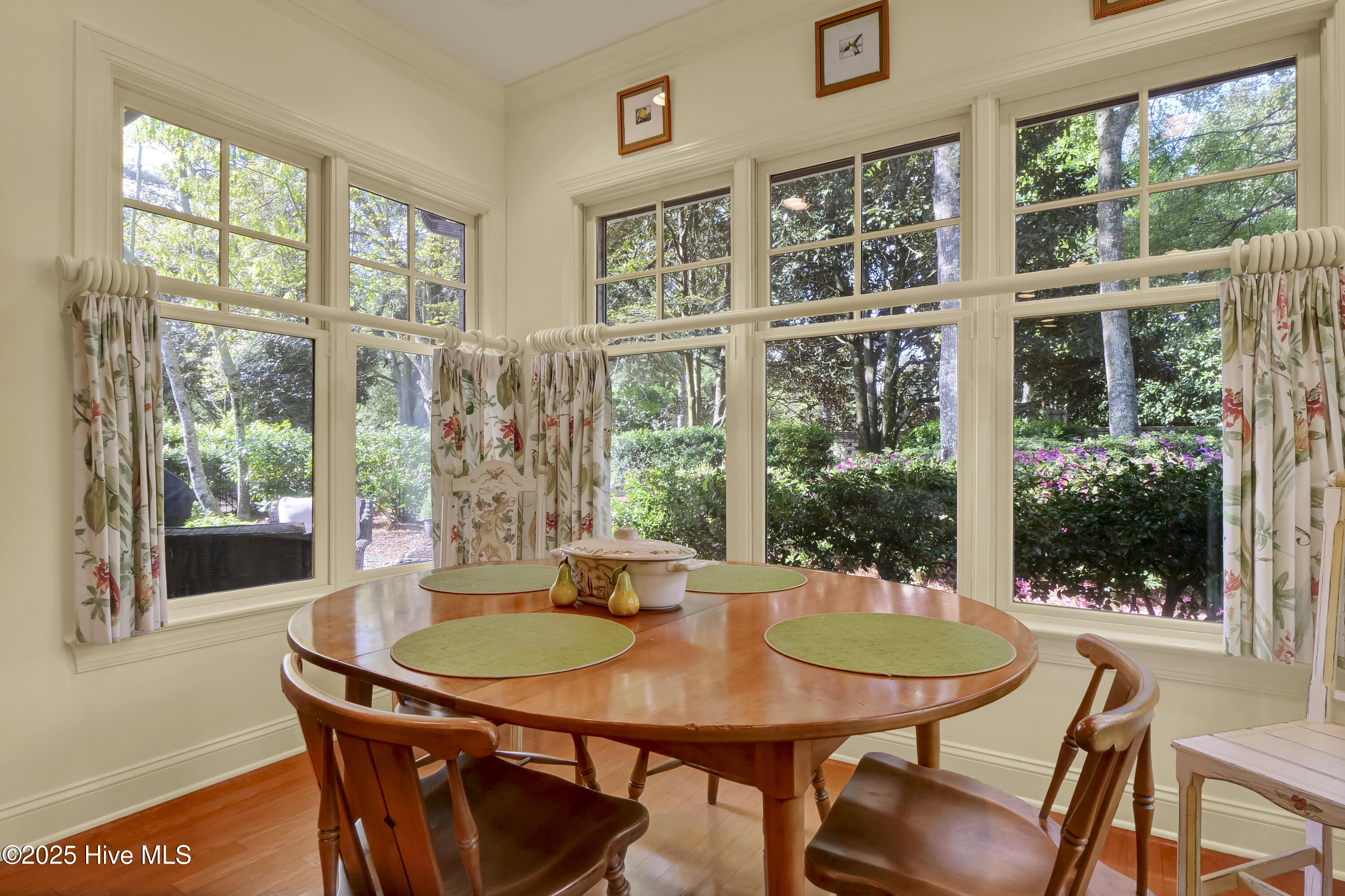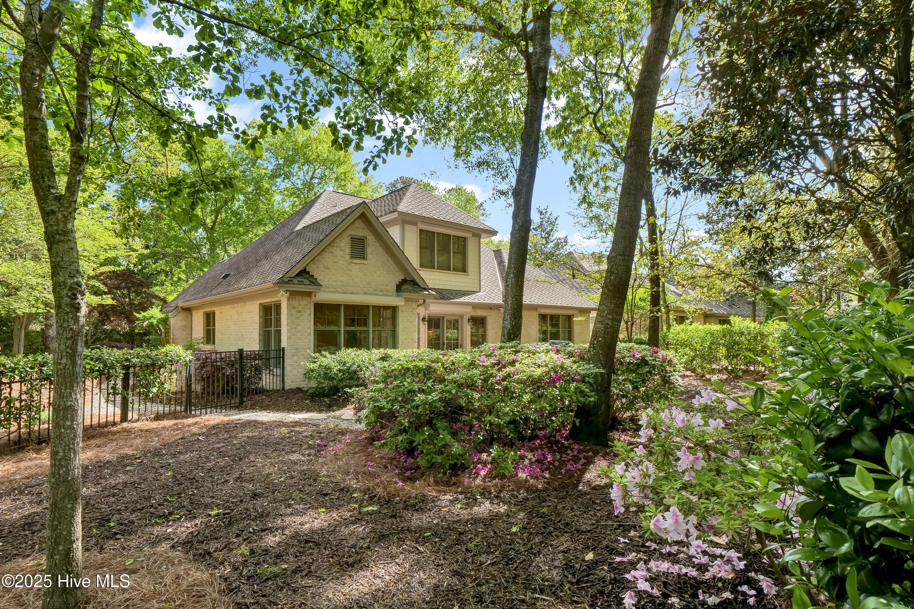 Experience refined living in this beautifully maintained brick home located in the desirable Saybrook Village section of Landfall. Set on the community's most private and expansive corner lot, this residence combines timeless architecture with modern comfort. The formal dining room flows into a spacious kitchen and breakfast area overlooking the lush, fully fenced backyard and patio—ideal for morning coffee, outdoor dining, or evening gatherings. A warm and inviting living room features a gas fireplace and custom built-in bookshelves, creating a welcoming space for both everyday living and entertaining. The first-floor primary suite offers privacy and luxury, complete with a walk-in designer closet and spa-inspired bath. With additional bedrooms and baths, this home provides the flexibility to accommodate guests, family, or home-office needs. A pre-inspection has already been completed and addressed, and the home is giving buyers confidence and transparency. Located just minutes from the Arboretum gate and Mayfaire, this home allows convenient access to shopping, dining, and entertainment. Landfall's gated community offers miles of nature trails, parks, sports fields, playgrounds, community gardens, and optional membership opportunities for golf, tennis, fitness, and social events.