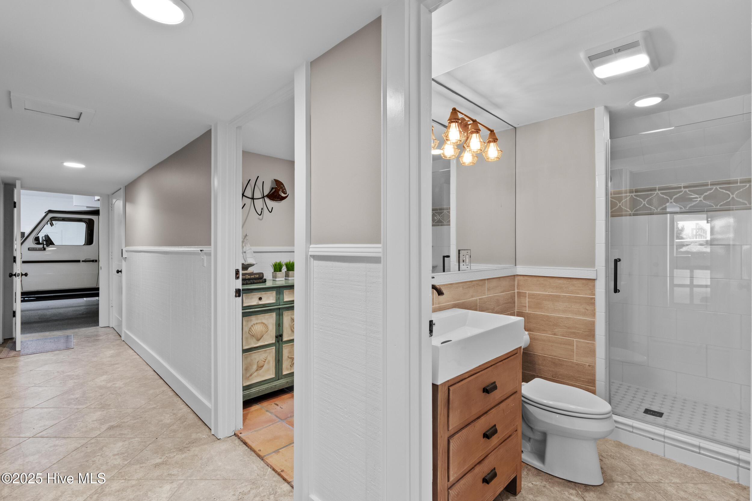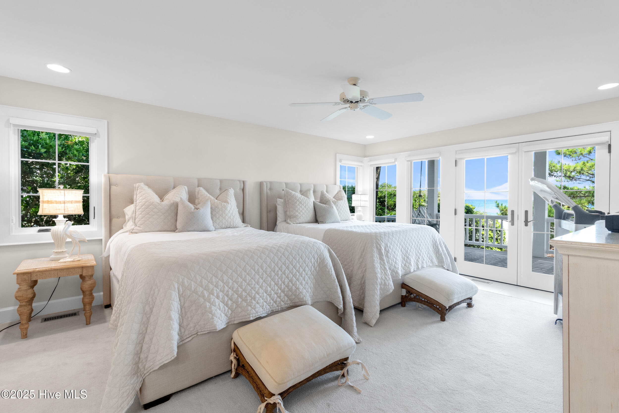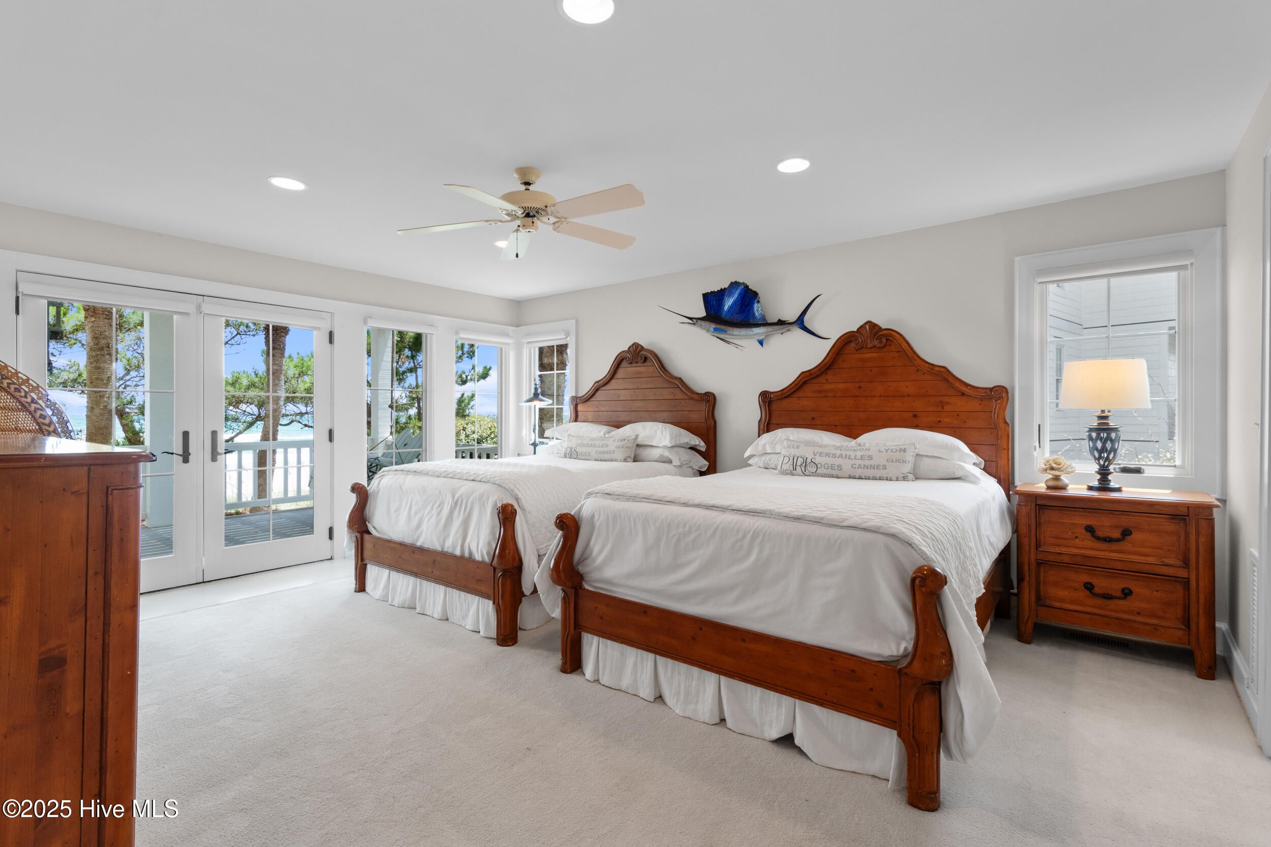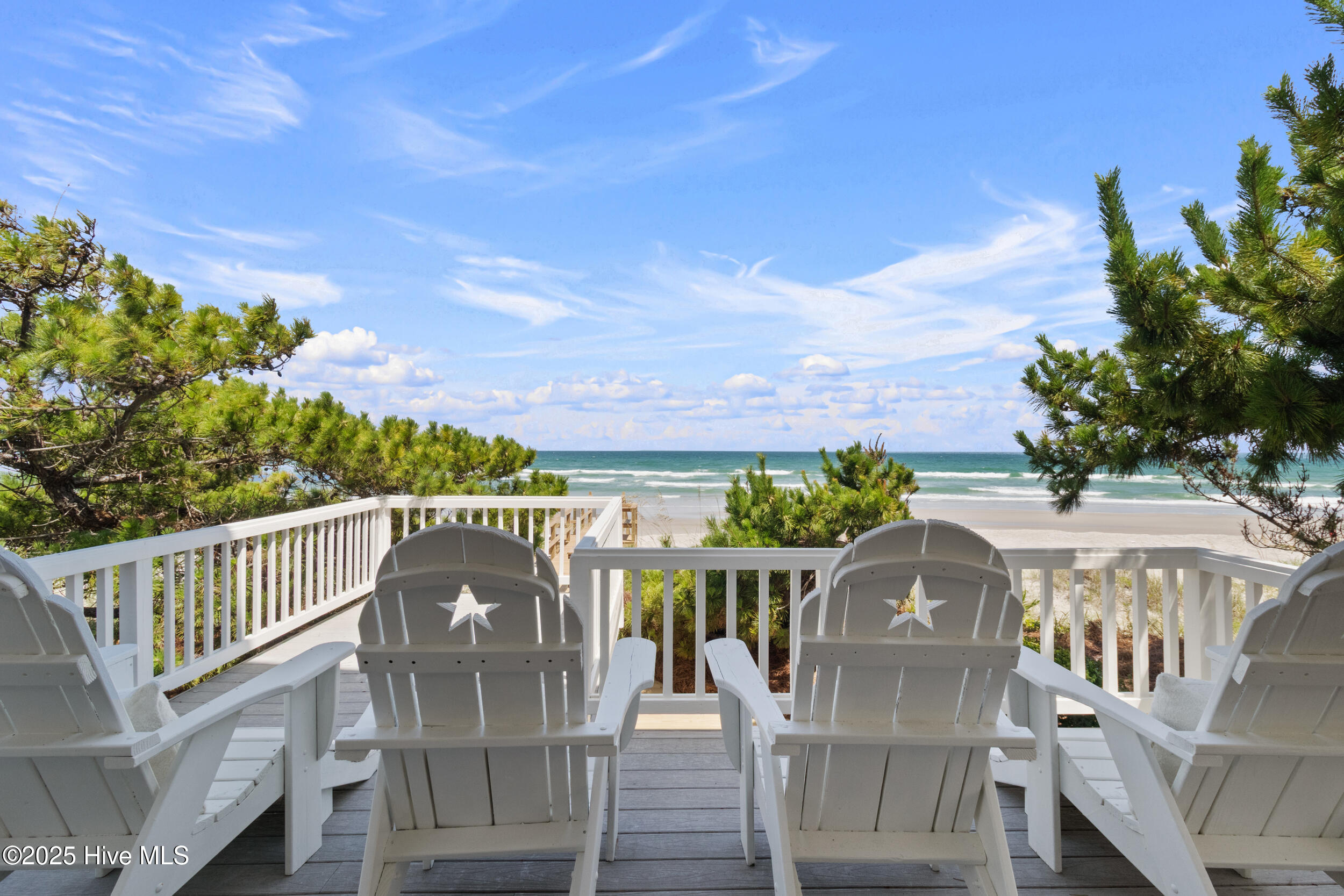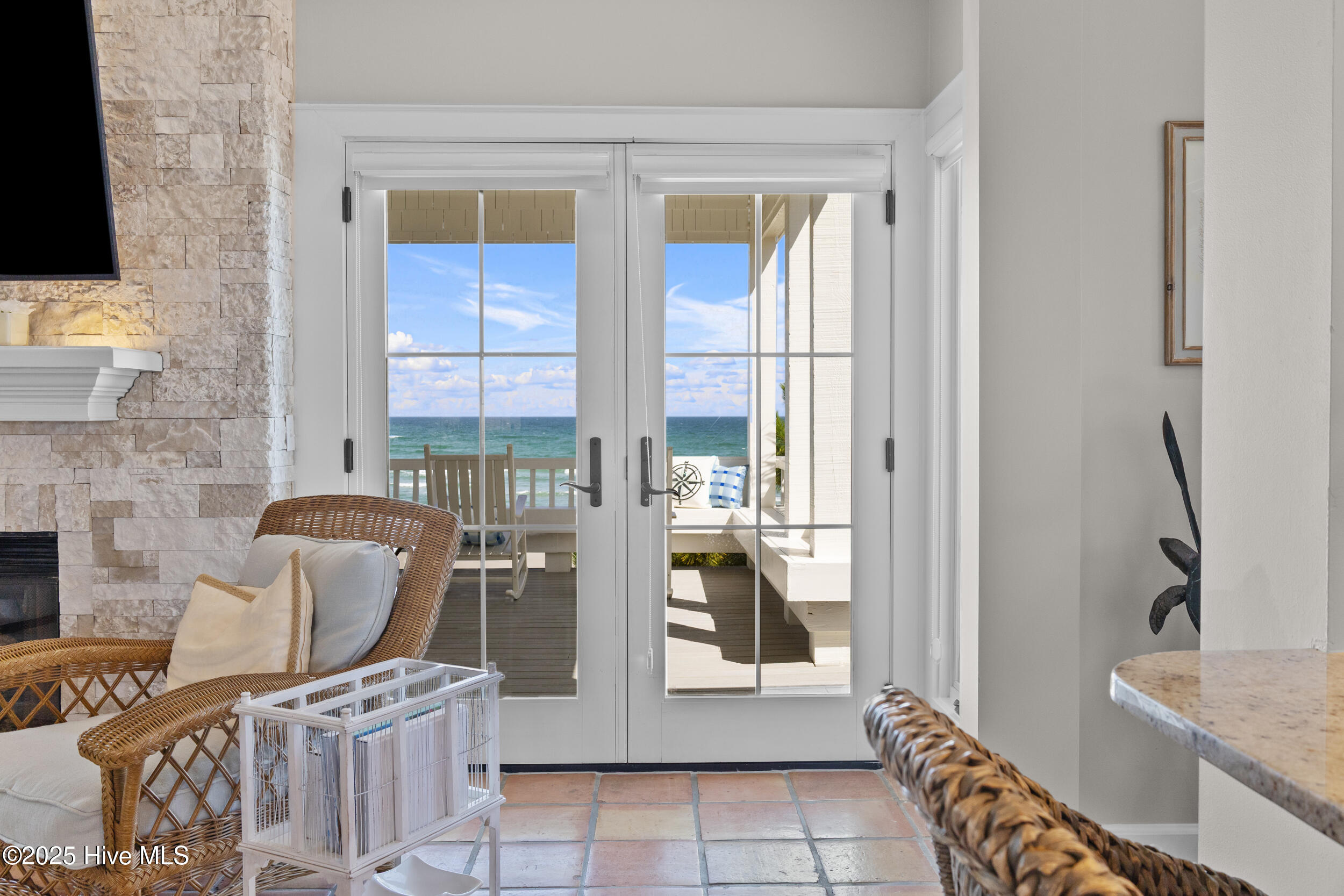 Welcome to your private oceanfront sanctuary on the coveted and gated Figure 8 Island—where timeless luxury meets the rhythm of the sea. As you arrive, a double driveway and dual garage offer a grand entrance, framed by rich ipe wood decking and majestic 150-year-old wooden doors that set the tone for the craftsmanship within. Step inside to discover sun-kissed Saltillo tile floors and a seamless flow between the expansive entertaining areas, dining space, and chef's kitchen—all with uninterrupted views of the Atlantic Ocean. The kitchen is a true culinary masterpiece, featuring a one-of-a-kind built-in 48'' Liebherr refrigerator/freezer, Bosch dishwasher, Viking double oven, gas cooktop, granite countertops, and custom cabinetry with built-ins at every turn. This exquisite home boasts 5 ocean-facing bedrooms and a bonus bunk-bed room, each with its own ensuite bath and direct access to the beachfront deck—an ideal setup for hosting guests in privacy and comfort. An elevator ensures effortless access to each level, while a striking spiral staircase leads to the Belvedere Room—perched as one of the highest viewpoints on the island. From here, enjoy breathtaking 360-degree views of the ocean, the intracoastal, and the lush expanse of Figure 8 Island. Architectural steel beams add a touch of industrial elegance on the third and fourth floors, reinforcing the home's strength and style. Although this property has remained untouched by flooding since its current ownership began in 2015, recent CAMA-approved beach fortifications—such as sandbag installations—provide added peace of mind and long-term security. The home is being sold fully furnished with handpicked furniture and decor throughout. This is more than a beach house—it's an oceanfront legacy, a retreat of rare distinction, and one of the finest residences available on Figure 8 Island.