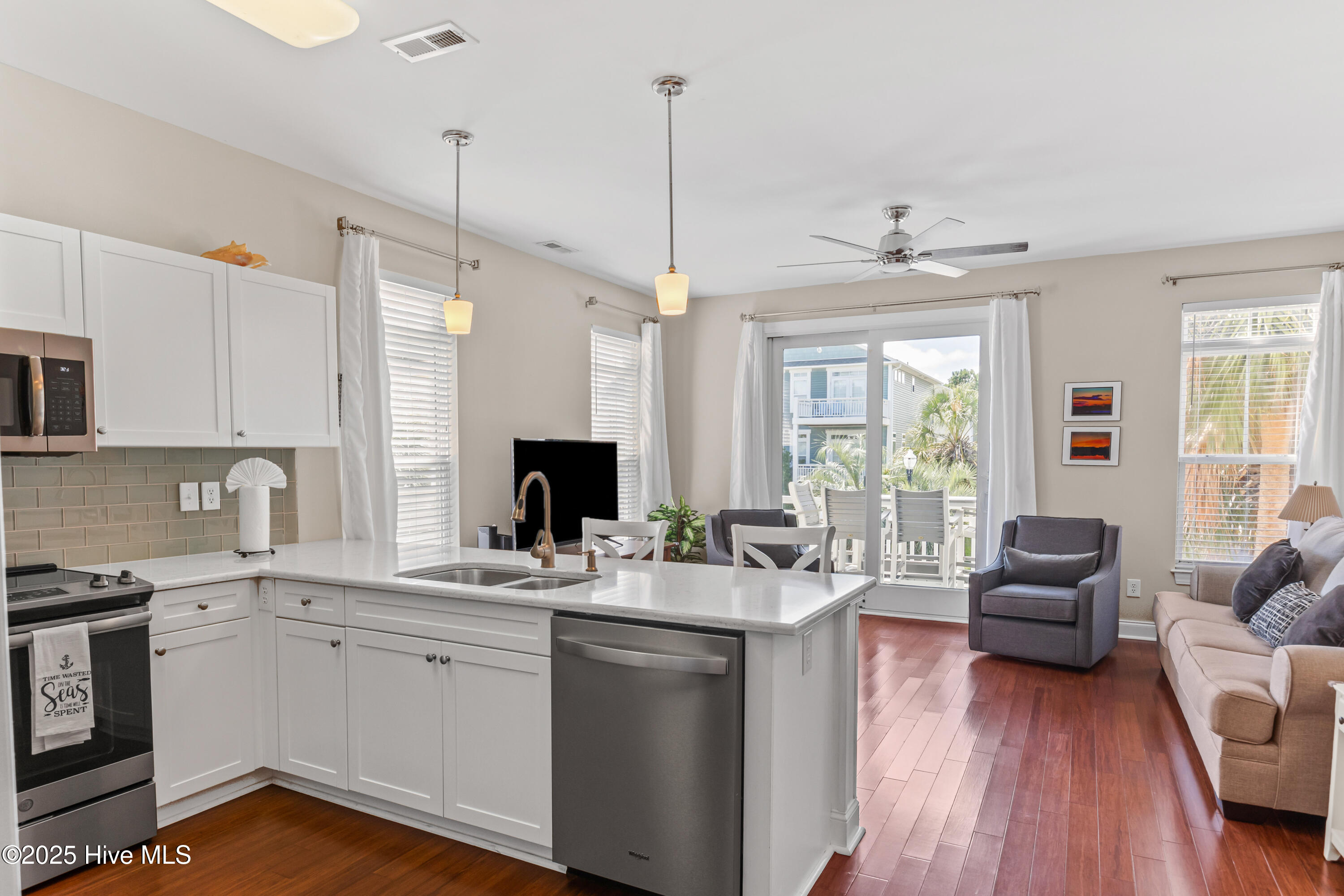 Beautifully maintained 3 bedroom 3 full bath home located on a quiet cul de sac in one of Carolina Beach's most desirable neighborhoods just five blocks from beach access restaurants and island favorites including Ocean Grill and Tiki Bar. This prime location offers exceptional convenience and strong short term rental potential. Enjoy a large carport and two levels of decks creating generous outdoor living space to relax entertain and catch ocean breezes. Inside the home is bright clean and welcoming with a coastal cottage feel. The open living area flows seamlessly into a stunning kitchen featuring quartz countertops white cabinetry stainless steel appliances custom backsplash and a large bar perfect for gathering. The main level includes a guest bedroom and full bath while upstairs offers a spacious primary suite plus an additional bedroom and full bath. Bamboo floors natural light and thoughtful design enhance the airy interior. Recent updates include a new HVAC system installed in 2025. Located near the Carolina Beach Greenway for biking jogging and walking and minutes to the beach dining and entertainment. Ideal as a full time residence beach retreat or income producing investment. Virtual tours available. Virtual tours available to showcase its charm.