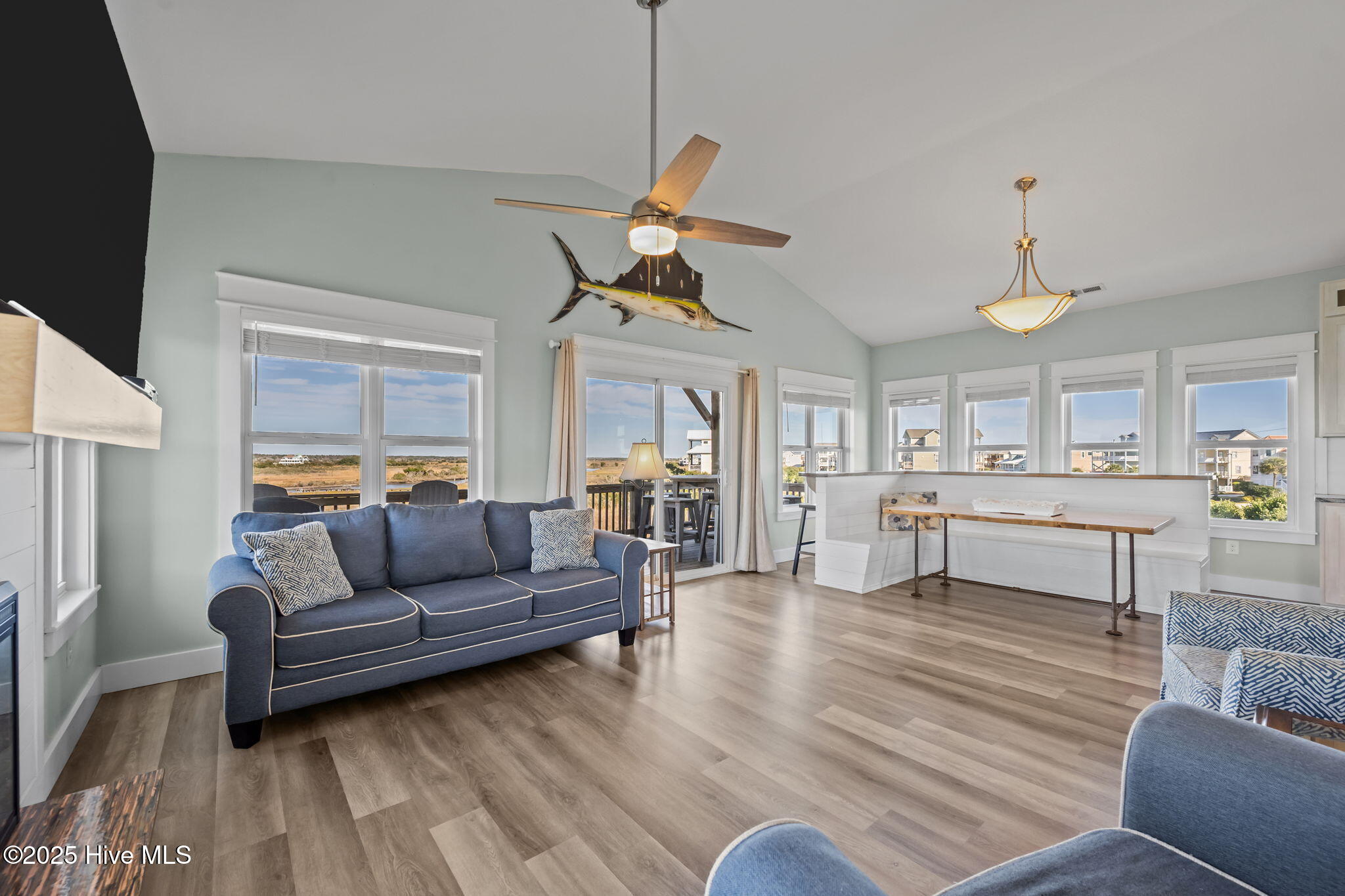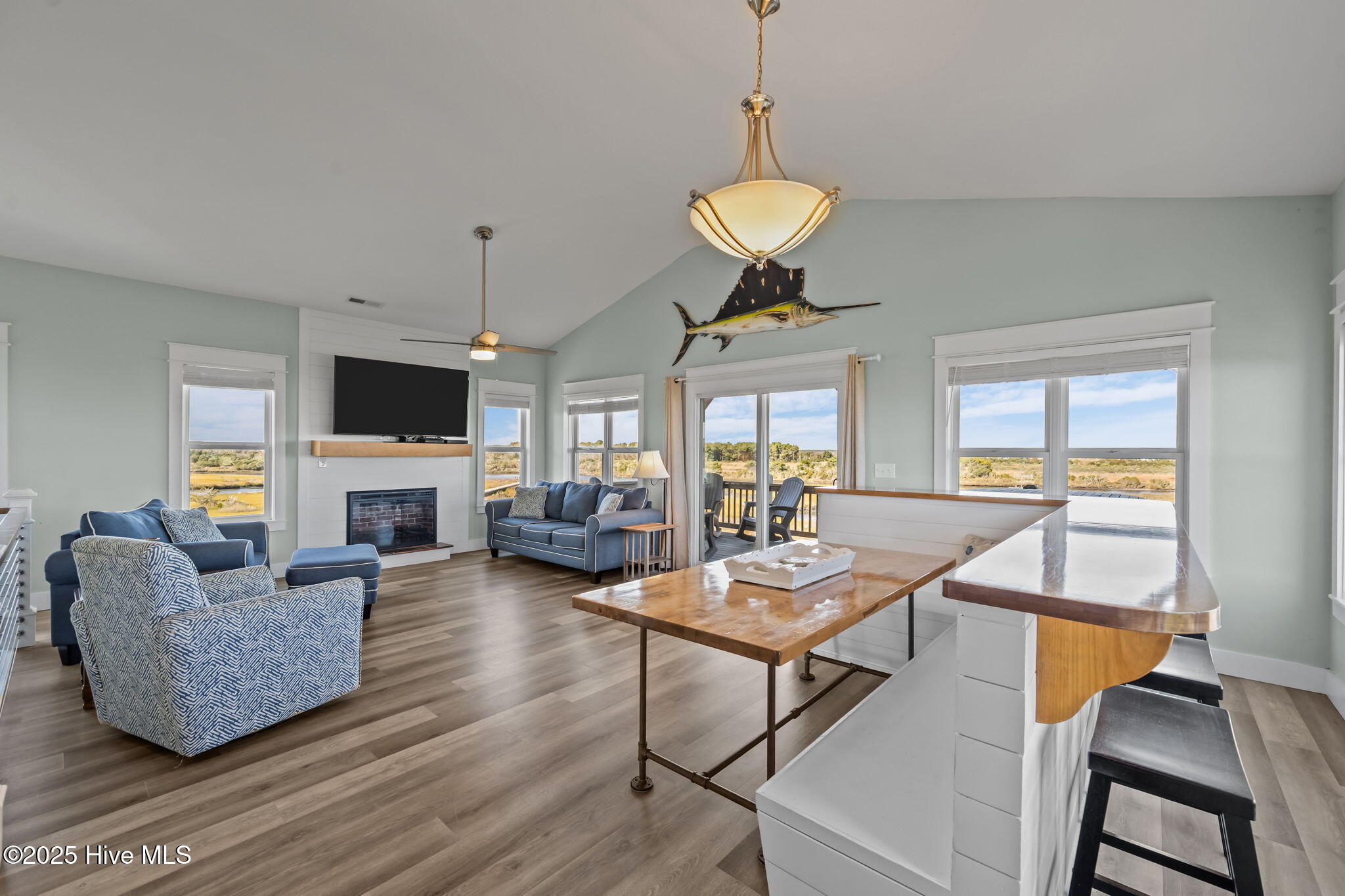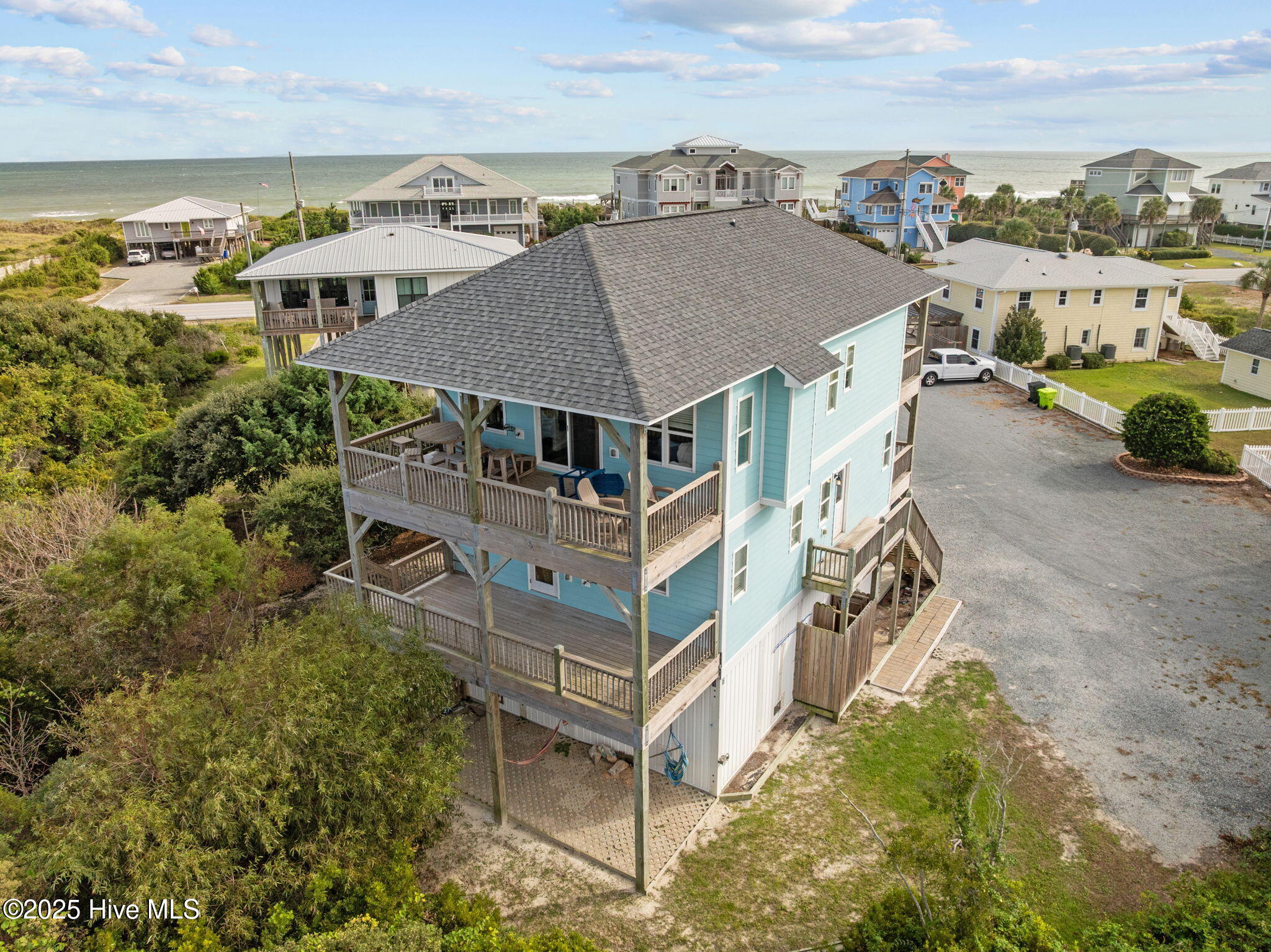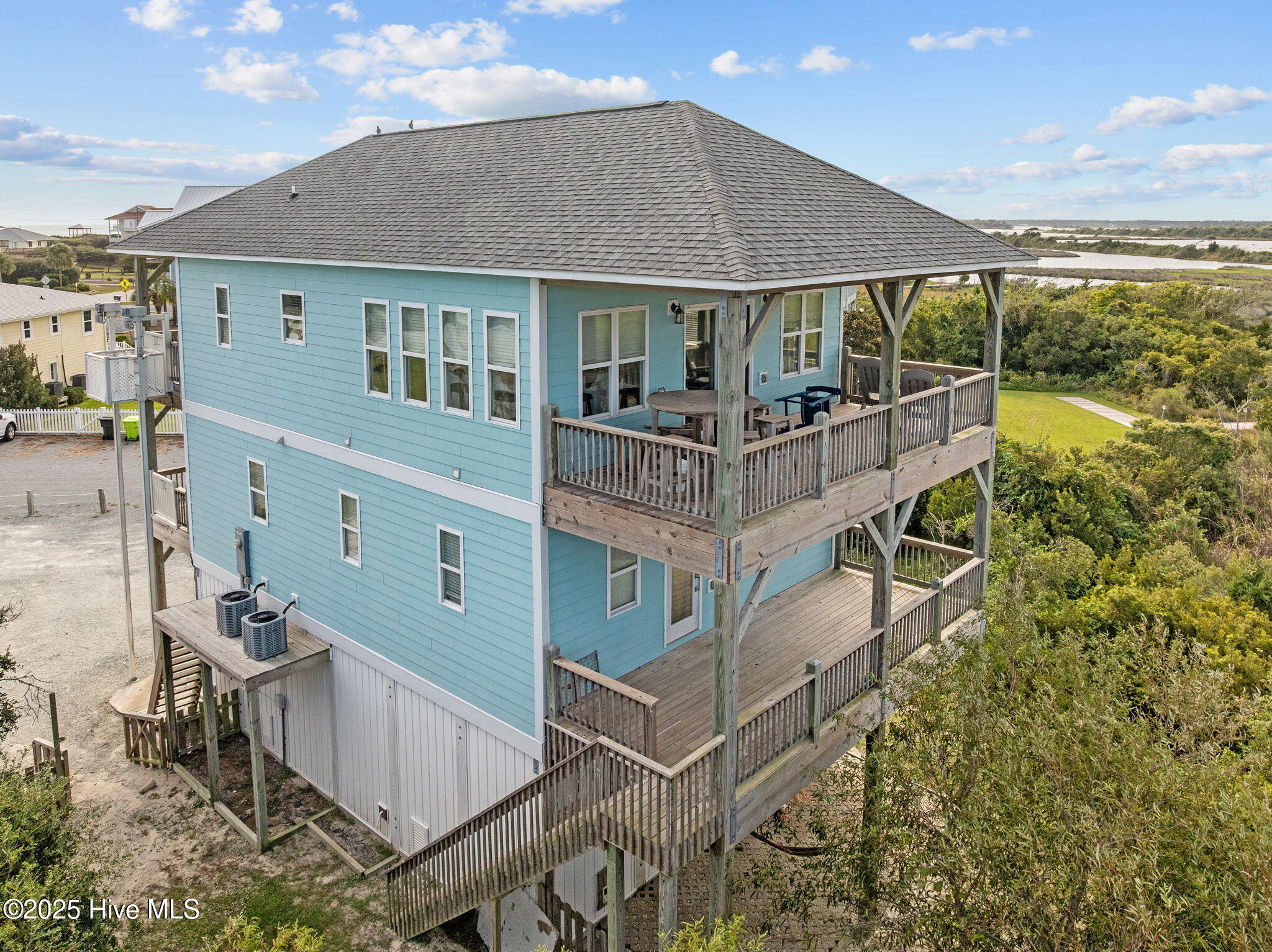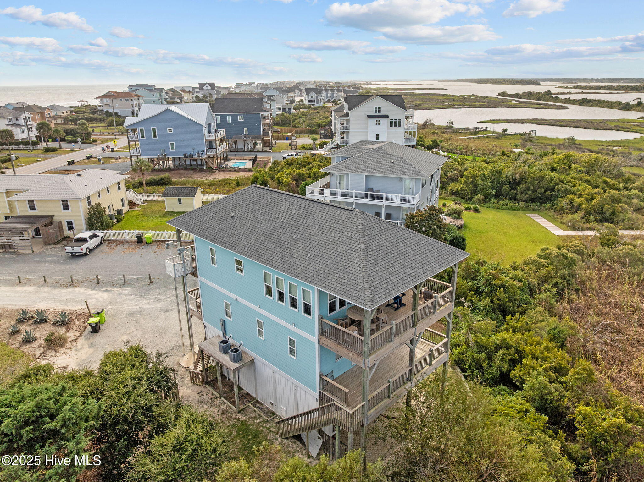 Stunning Soundfront Beach House in North Topsail Beach. Discover your dream coastal retreat with this beautiful custom built 4-bedroom, 3.5-bathroom beach house. The top floor features a bright, open concept floor plan, a spacious living area with fireplace, built in breakfast bar and dining nook, custom kitchen with boat shaped island, shiplap backsplash, and stainless appliances. There is also a main level half bath and bedroom with private bath and office area with deck access. On the first floor, you'll find the primary bedroom suite with private deck, an upgraded bath with double vanity sinks, two additional bedrooms, both with deck access, a full hall bath and laundry. The enclosed garage level features a private entry to the home, a large finished storage room and plenty of room for storage. Perfectly positioned with breathtaking water views from every angle. Enjoy the peace and privacy of sound side living while being just a short walk to the beach — the best of both worlds! This spacious and inviting home offers the perfect blend of island charm and modern comfort, ideal for full-time living, a vacation getaway, or an investment property. Expansive decks to soak in sunset views over the water. Outdoor shower and convenient cargo lift. Don't miss this opportunity to own a piece of paradise in North Topsail Beach! Your island escape awaits! Seller Financing Available.