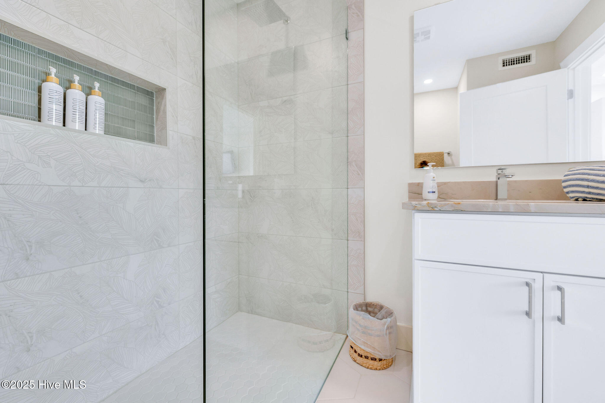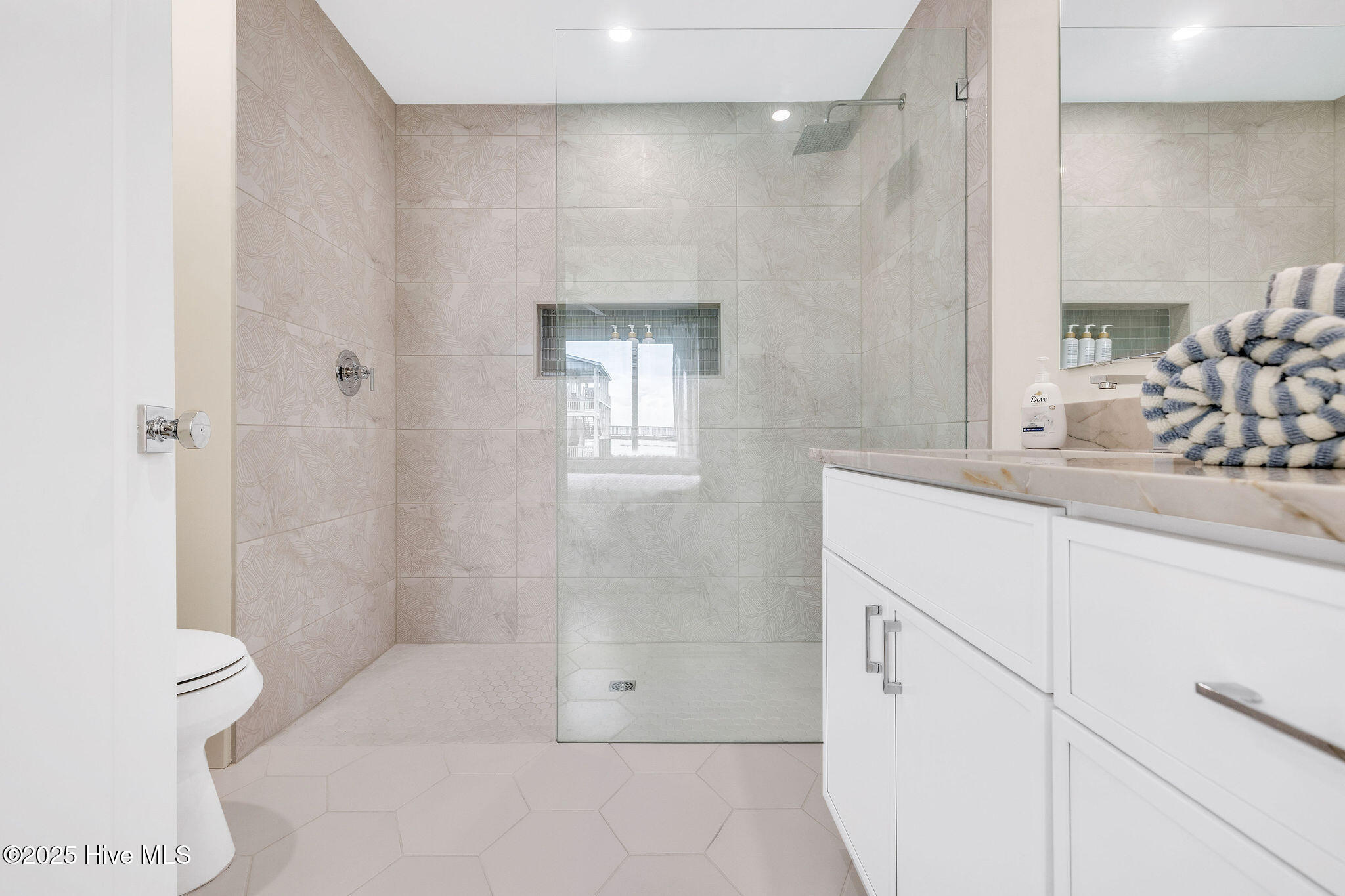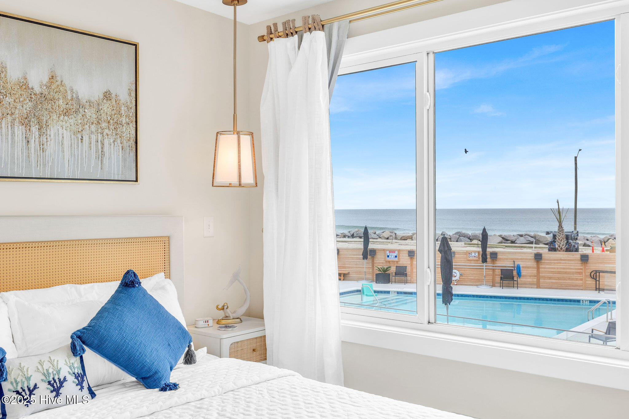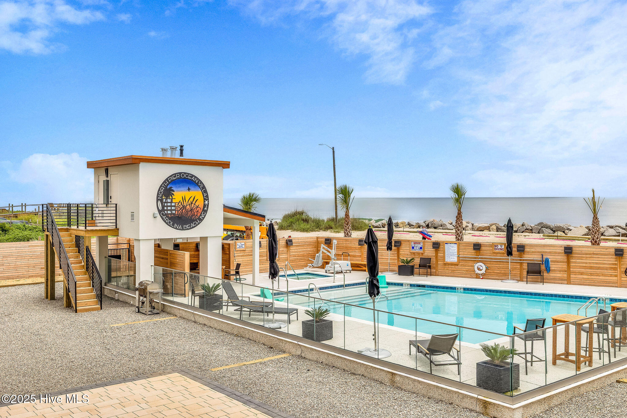 Step into upscale seaside living with this fully updated 2 bedroom, 2 bathroom oceanfront condo in the North Pier condominium. Completely furnished and already generating strong late-season rental income, it presents an outstanding opportunity for investors or second-home buyers. Designed for low-maintenance luxury, the open-concept layout welcomes you with a showstopping kitchen featuring custom tile backsplash, sleek quartz countertops, premium appliances, high-end fixtures, and beautiful teak wood shelving. The kitchen flows seamlessly into the bright and airy living room, where sliding glass doors lead to a private covered balcony overlooking the ocean. The primary suite, located at the front of the condo, showcases expansive windows framing sweeping ocean and pool views. Its spa-inspired ensuite bath includes a stunning tiled zero-entry shower. A second bedroom sits at the back of the condo with a full bath just outside the door, complete with a tiled tub/shower combo. A dedicated laundry closet with stacked units adds everyday convenience. Residents of North Pier enjoy two assigned ground-level parking spaces, an EV charging station, and access to a brand-new elevator along with dual staircases. Ideally located on the North End of Carolina Beach, just behind the iconic Carolina Beach Pier and steps from Freeman Park, High Tide Lounge & Tiki Bar, and two public beach access points, this condo offers the ultimate setting for sun-soaked days and effortless seaside living.
