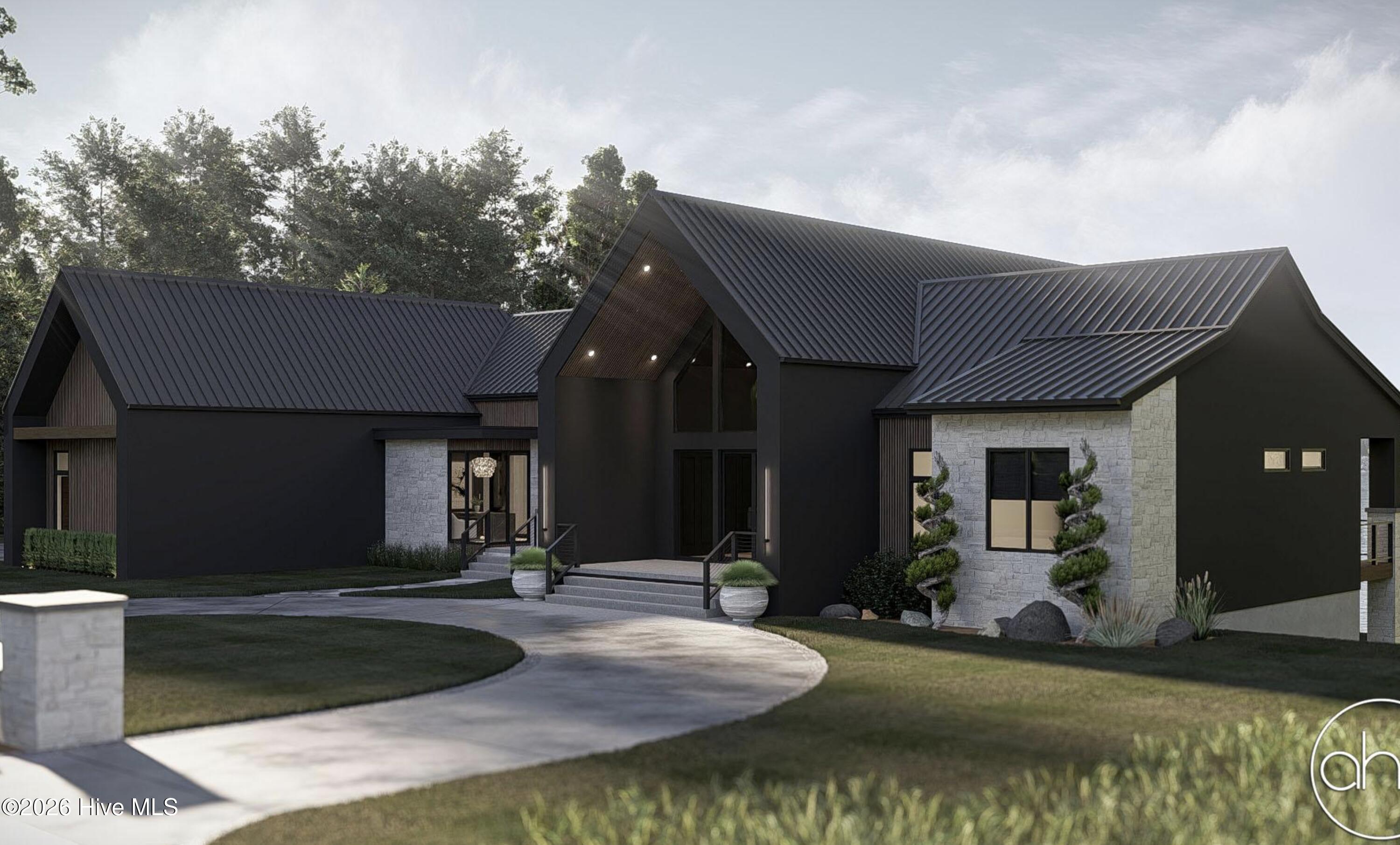 Discover a truly rare waterfront sanctuary in Sneads Ferry: this 3.6-acre private, wooded lot is exceptionally wide and offers direct deep-water access. Towering pines frame breathtaking views of the Intracoastal Waterway, with gentle breezes and shimmering sunlight creating an unparalleled sense of calm. Nestled in seclusion, this hidden gem is the perfect canvas for your custom estate. Imagine waking each morning to the rustle of trees and water vistas at your doorstep. The lot's generous proportions allow for a winding driveway through the woods, a private dock, gardens, expansive porches, and outdoor spaces designed for your lifestyle. Enjoy boating and fishing right from your backyard, exploring the Intracoastal Waterway and the Atlantic Ocean beyond. The wooded acreage provides unmatched privacy for personalized features like fire pits, a pool, trails, or entertaining pavilions overlooking the water. Just a short drive from Topsail Island beaches, North Shore Country Club golf, Sneads Ferry conveniences, and Jacksonville, it blends peaceful retreat with everyday accessibility. This exceptional property empowers you to build the home of your dreams. The attached rendering illustrates one elegant coastal-inspired possibility, with graceful lines harmonizing with nature. This is just a potential rendering; meet with our builder to fully explore and customize every aspect of your build—traditional, modern, or luxurious low-country style. Note that pricing does not include the basement as depicted, offering flexibility for your foundation and additional space needs. This rare waterfront lot represents a once-in-a-lifetime opportunity to create your private sanctuary and legacy estate. Start building your dream today.